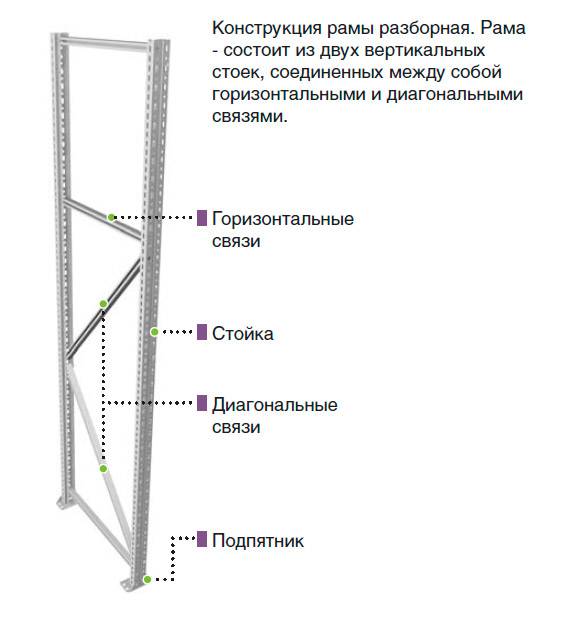 ОписаниеРама разборная стеллажа MS Pro высотой 2000 мм укомплектована подпятником (с комплектом крепежа), горизонтальными и диагональными связями. Без анкеров. Толщина металла стойки 1,2 мм.