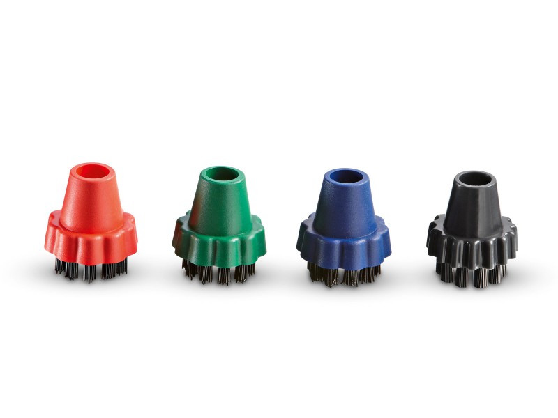 ОписаниеВ одной упаковке 4 круглые щетки для паропылесоса. Корпуса щеток четырех цветов для легкой дифференциации насадок по зонам применения (например: синяя – кухня, красная – санузел, и т.п.)