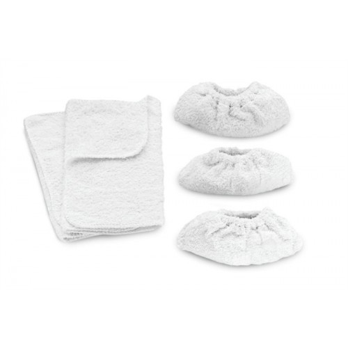 В комплект входит - 2 половые тряпки, 3 салфетки из махровой ткани для ручной насадки. -