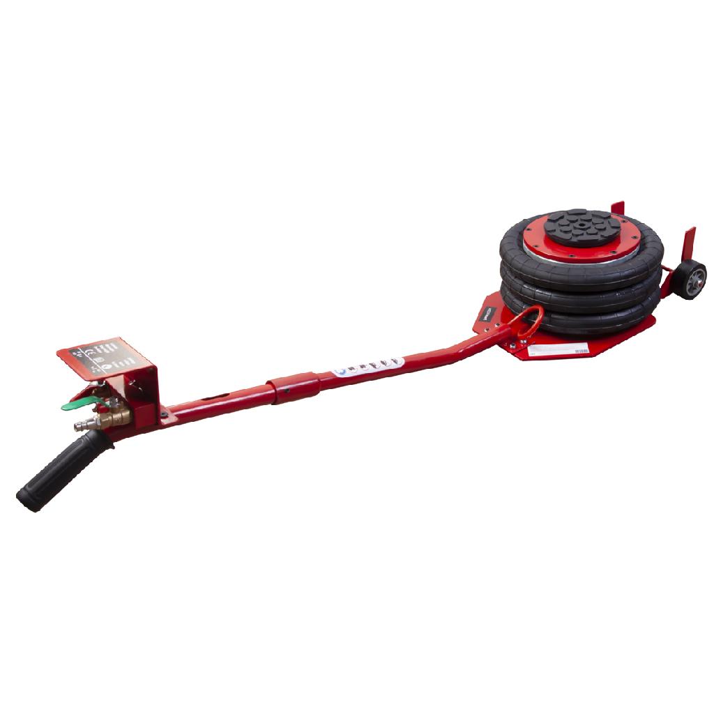 Пневматический домкрат для подъема автомобилей. Не нуждается в техническом обслуживании, прост в использовании, очень устойчив благодаря внутреннему телескопическому цилиндру. Подключение к воздушной магистрали осуществляется при помощи быстросъемного фитинга.