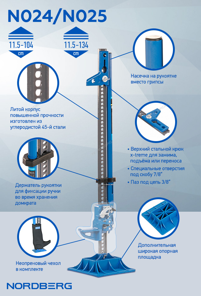 - Домкрат реечный Nordberg N025 3,5 тонны, 153 см