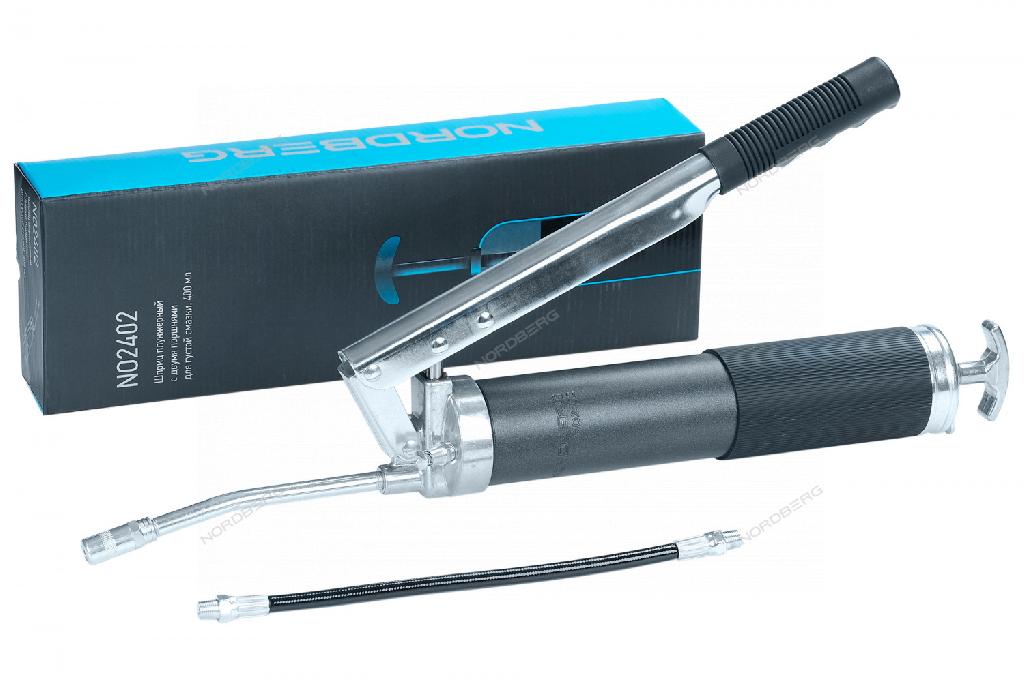ОписаниеШприц плунжерный с двумя поршнями для густой смазки, 400 мл NORDBERG N02402