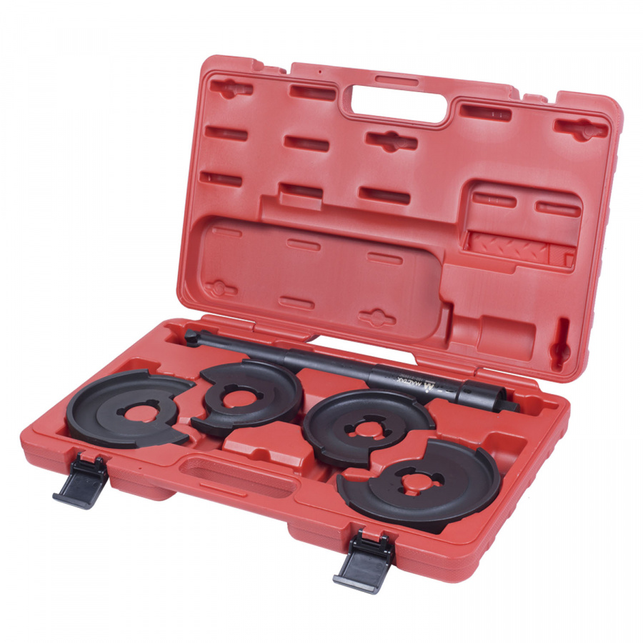 - Стяжка МАСТАК амортизаторных пружин, центральная, кованая, дисковые держатели, кейс, 5 предметов