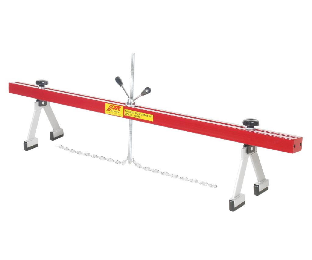 Регулируемые по высоте и ширине опоры надежно удерживают траверсу над моторным отсеком автомобиля.