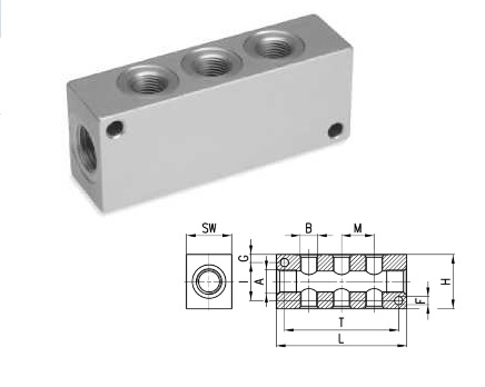 - Коллектор CAMOZZI 3043 3/8-3D-1/4, вход 3/8", 3 выхода на 1/4". выходы с двух сторон