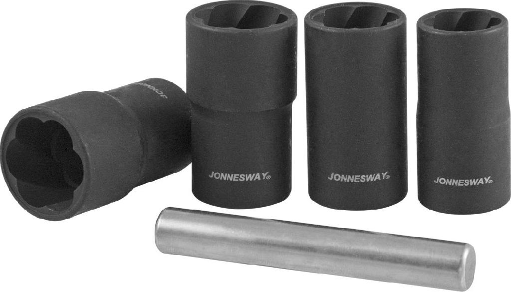- Спиральные Jonnesway головки для демонтажа поврежденного крепежа в наборе, 17 19 21 22 мм, 5 предмет