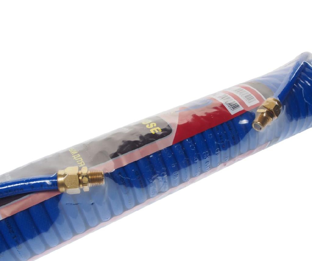 - Шланг компрессора 8х12мм 10м спиральный с резьбовыми наконечниками 1/4" JTC
