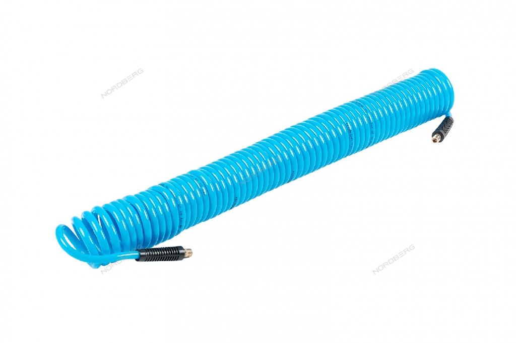 - Шланг Nordberg полиуретановый спиральный 8х12 мм с резьбовыми переходниками, 11 м