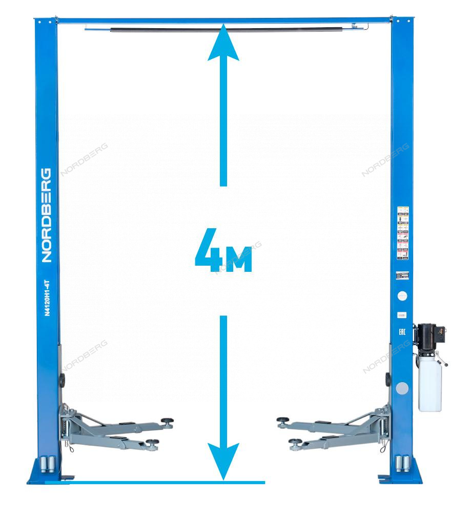 Подъемник Nordberg 380V двухстоечный с верхней синхронизацией 4 тонны H=4 м, синий