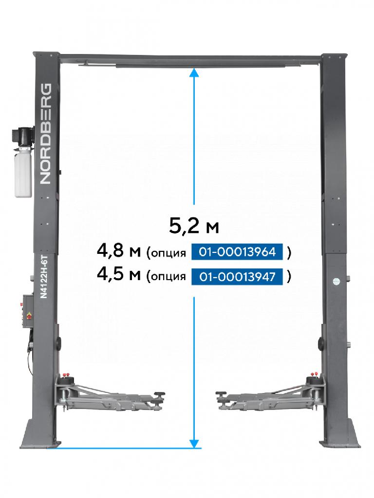 ОписаниеN4122H1E-6G NORDBERG Подъемник 2х стоечный 6т с верхней синхронизацией LONG 380V