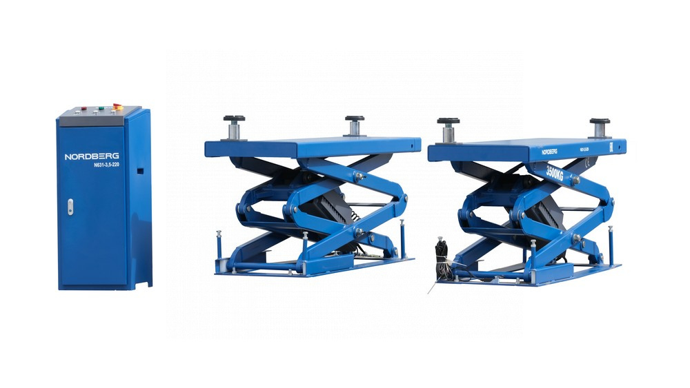 Подъемник ножничный Nordberg 3,5 т, с встроенными адаптерами для SUV авто, 220 В, синий