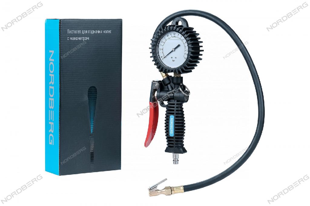 - Пистолет Nordberg для подкачки шин, с жидкостным манометром 80 мм TI62