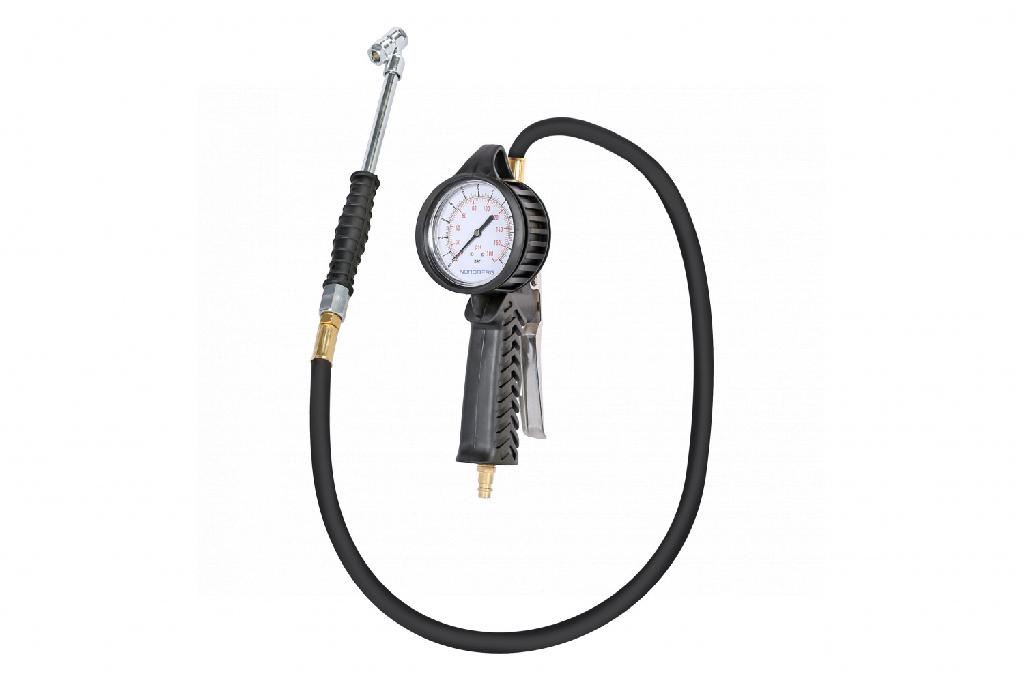 Незаменимый инструмент визуального контроля давления в шинах и их накачки, благодаря большому манометру и эргономичной нескользящей конструкции.