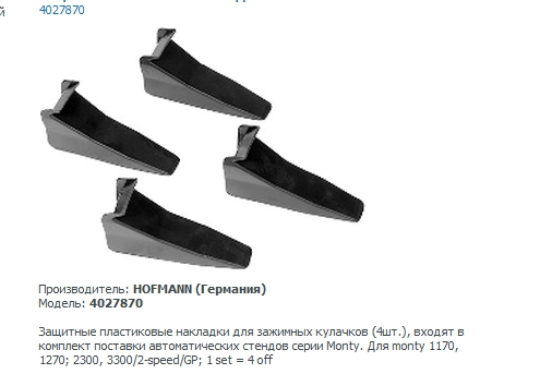 - Накладки пластиковые на зажимные кулачки Monty 1270-3300 2-speed/GP комплект 4шт. Hofmann